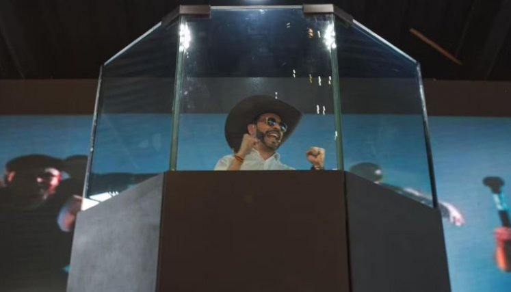 La estructura cuenta con tres gruesos paneles de vidrio y acompaña ahora cada una de sus intervenciones. En un reciente acto en Villavicencio, el aspirante apareció vestido con camisa blanca y sombrero, levantó las manos ante el público y pronunció un discurso enfático mientras su esquema de seguridad vigilaba ambos costados del escenario.
