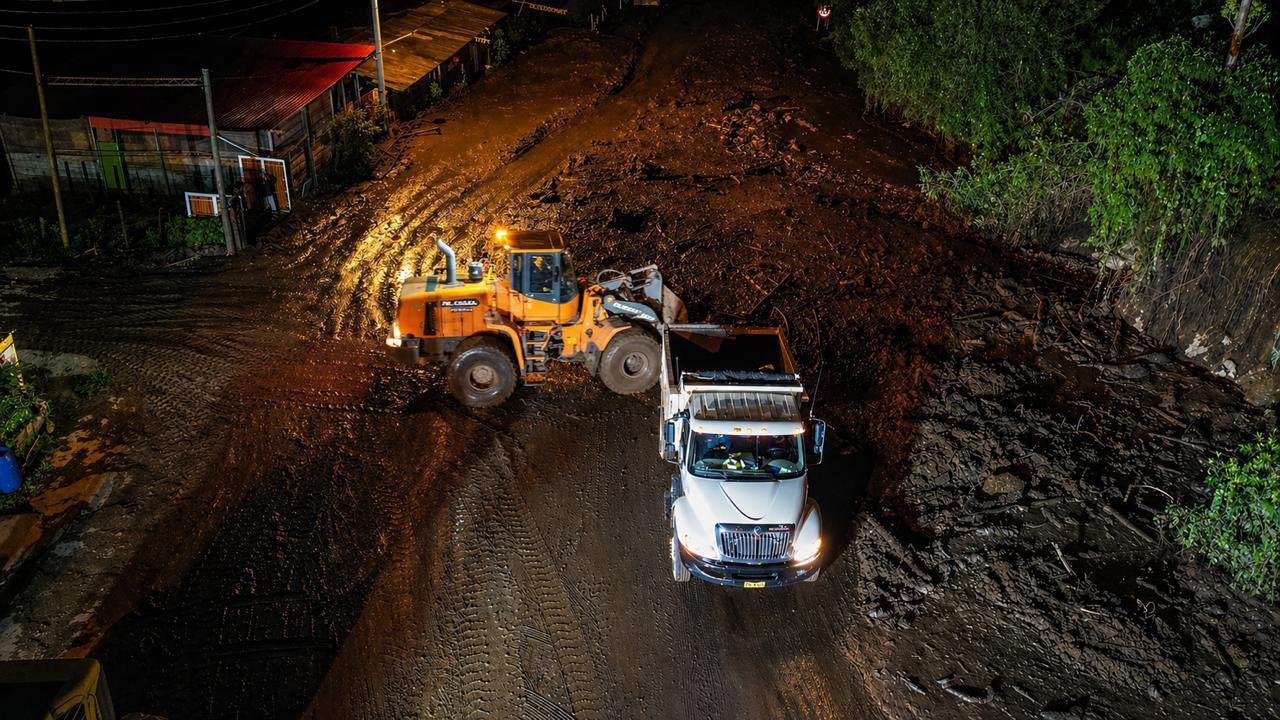La emergencia dejó varios vehículos atrapados durante horas y obligó a las autoridades a desplegar maquinaria para remover lodo, piedras y escombros que cubren completamente la calzada. Equipos de la concesión vial y la Gobernación trabajan sin pausa en sectores como Curubital y La Virgen, donde el material desprendido continúa cayendo desde la montaña.