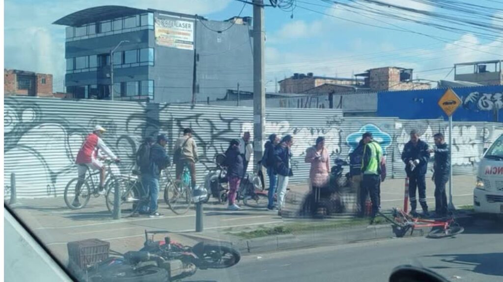 En el siniestro se vieron involucrados una motocicleta y una bicicleta. En el lugar se observa a varios ciudadanos y personal de emergencia atendiendo la situación, mientras una ambulancia llegó para brindar asistencia.