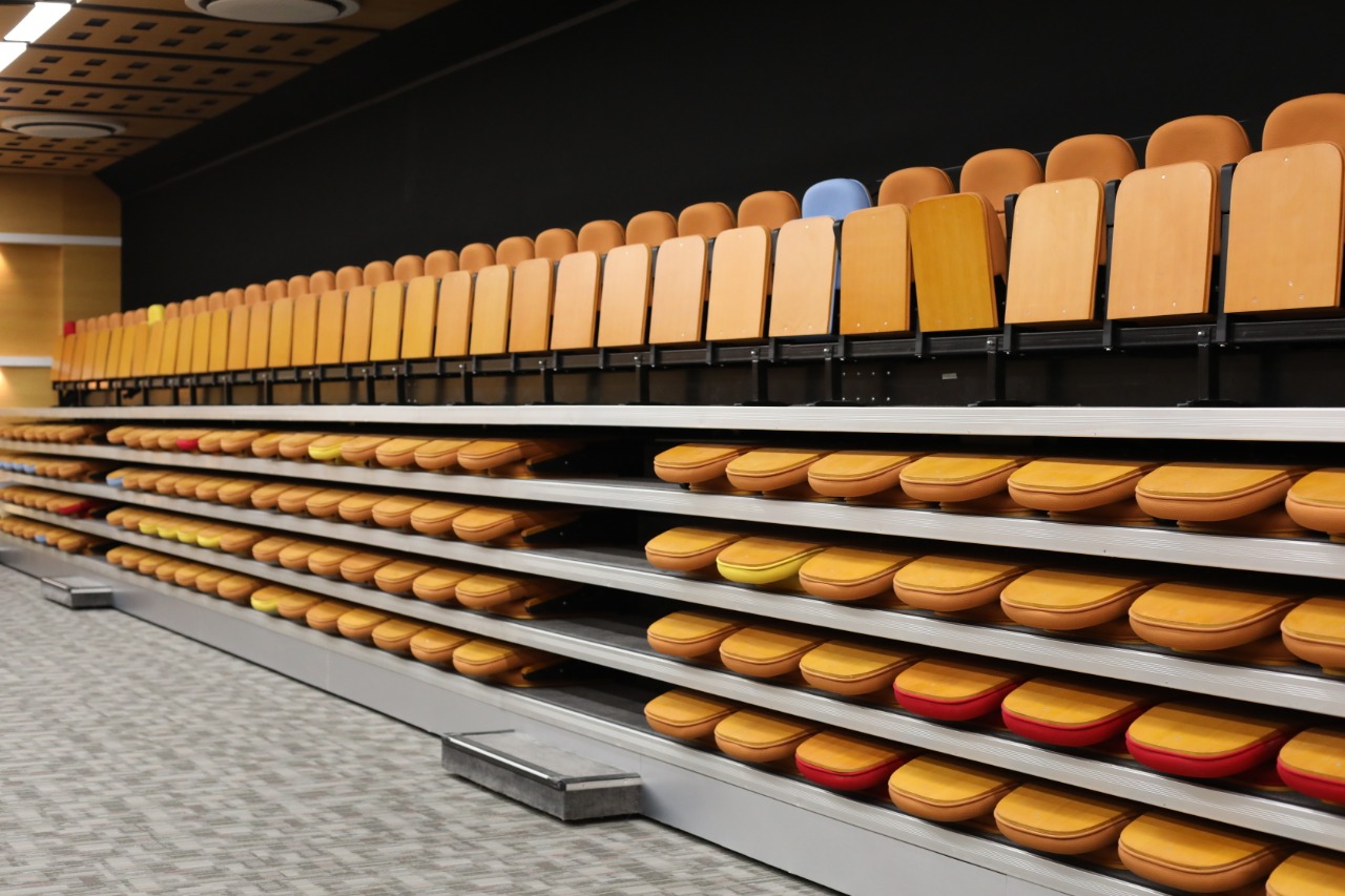 Una de sus principales novedades del nuevo sitio de reunión es la estructura de sillas retractiles, que le permite ampliar su capacidad total de 360 a 500 personas sentadas en sillas movibles.