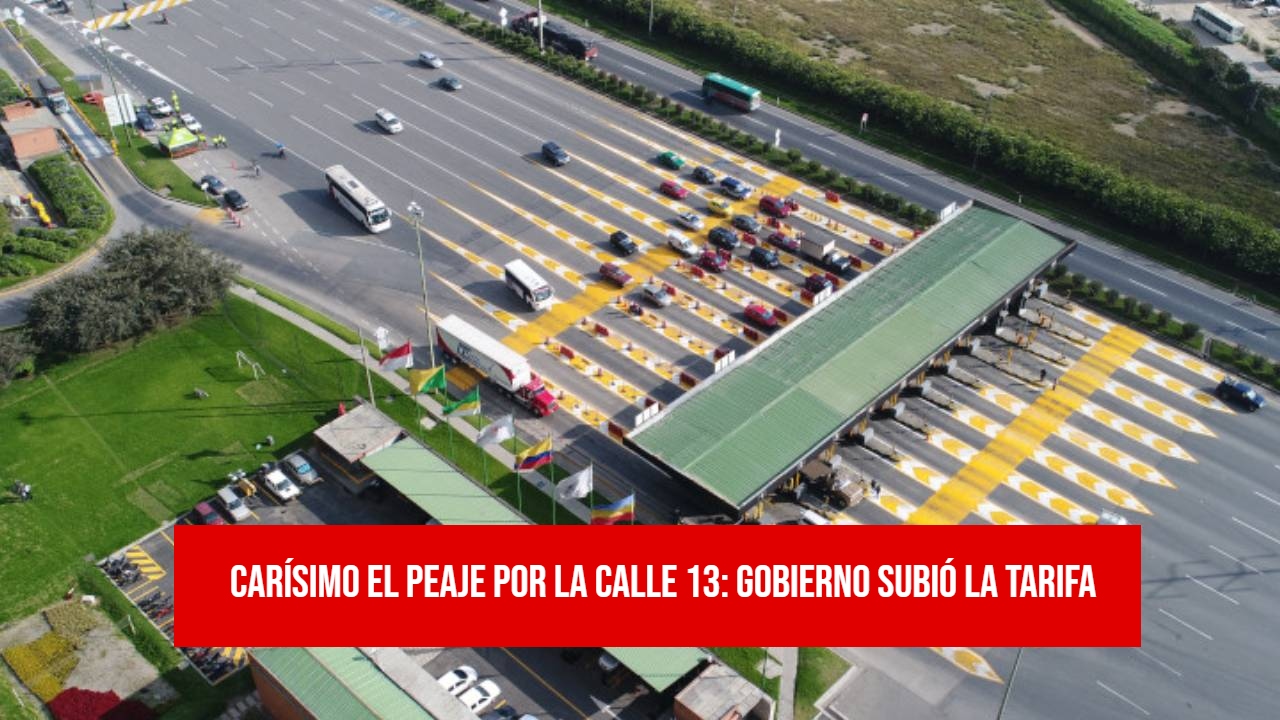El peaje de la Calle 13 pasó de $11.800 en 2025 a $12.402 en 2026, lo que representa un incremento de $602, equivalente al 5,1 %, ajuste aplicado con base en el Índice de Precios al Consumidor (IPC).